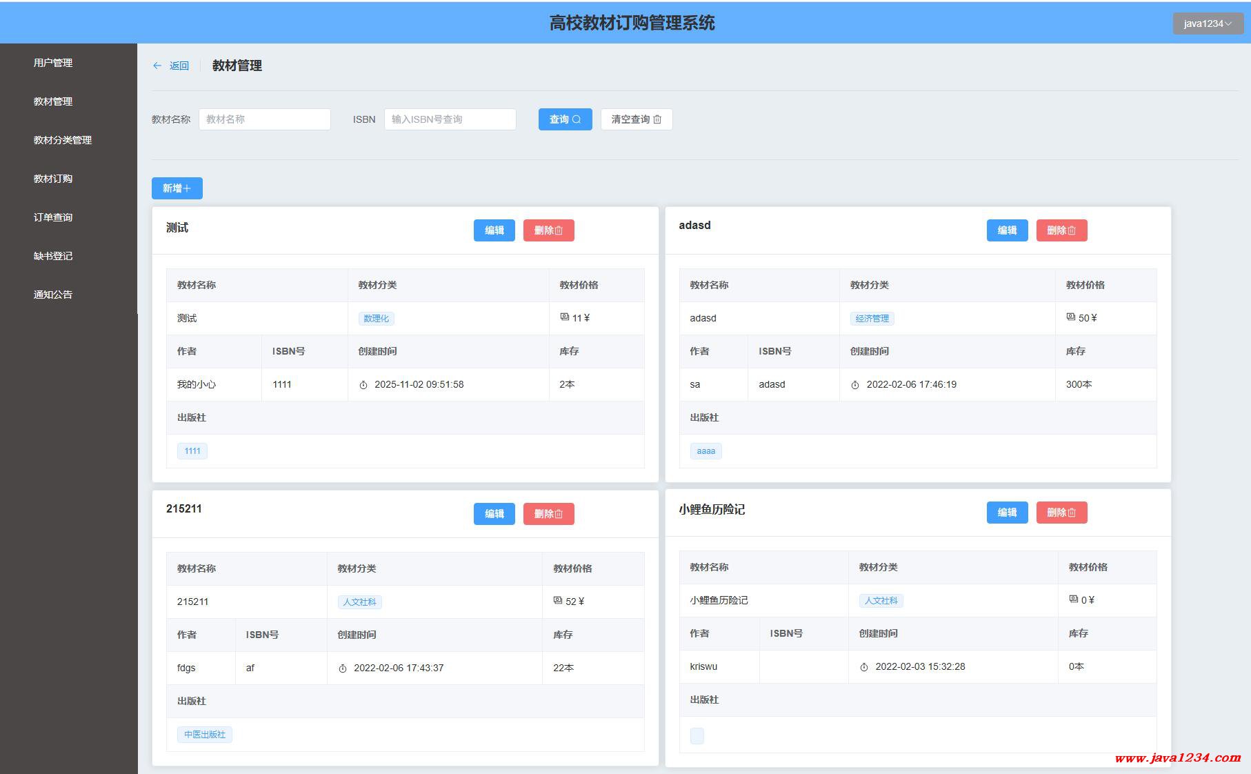 [JavaWeb畢業(yè)設(shè)計] 【免費】SpringBoot+Vue3高校教材訂購管理系統(tǒng)【Java畢業(yè)設(shè)計】下載 日期:2025-11-02 17:28:21