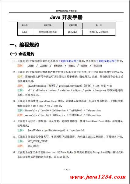阿里巴巴Java開(kāi)發(fā)手冊(cè)(公開(kāi)版)PDF 下載 下載地址: 鏈接:https://pan.baidu.com/s/1q0-p70grrLOo6tYO61-nKQ
