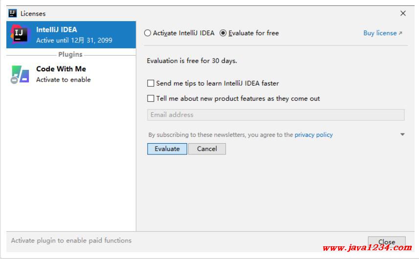 1銆佺瓑寰?IDEA 2021.1 榪愯, 涓棿浼?xì)鍏堝脊鍑轰竴涓敞鍐屾錛屾垜浠嬀閫?/span>