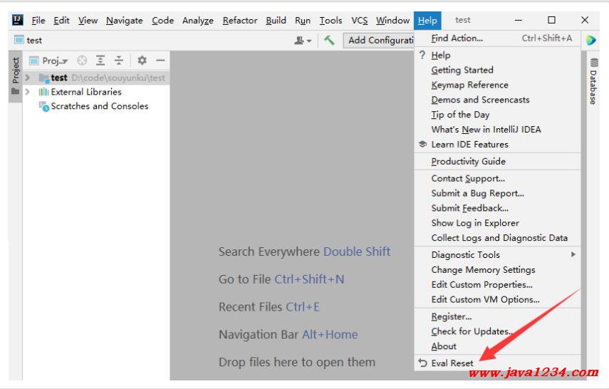 濡傛灉IDE娌℃湁鎵撳紑欏圭洰錛屽湪 Welcome 鐣岄潰鐐瑰嚮鑿滃崟錛?Get Help -> Eval Reset