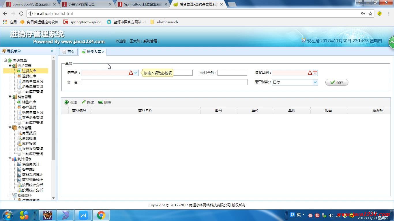 SpringBoot打造企業(yè)級(jí)進(jìn)銷存視頻教程第二十六講 高清視頻演示下載:https://eyun.baidu.com/s/3gf9yzaN 主要內(nèi)容: