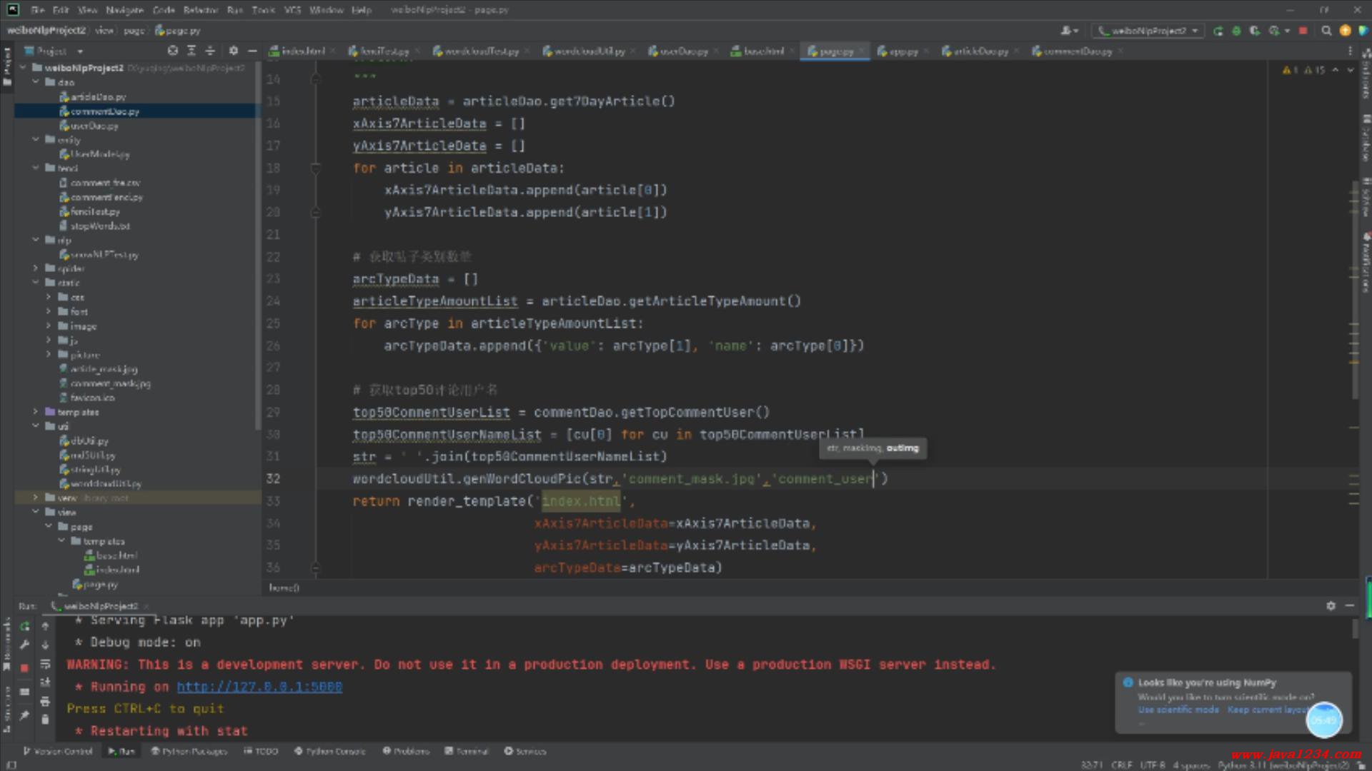21_NLP輿情分析視頻教程_主頁(yè)-評(píng)論用戶(hù)名詞云圖實(shí)現(xiàn) B站在線學(xué)習(xí)地址: https://www.bilibili.com/video/BV15MMfzhEXR/ 高清視頻+源碼+文檔領(lǐng)?。?br style="padding: 0px; margin: 0px;" /> http://python222.com/post/7 相關(guān)截圖: ![]() ![]() |