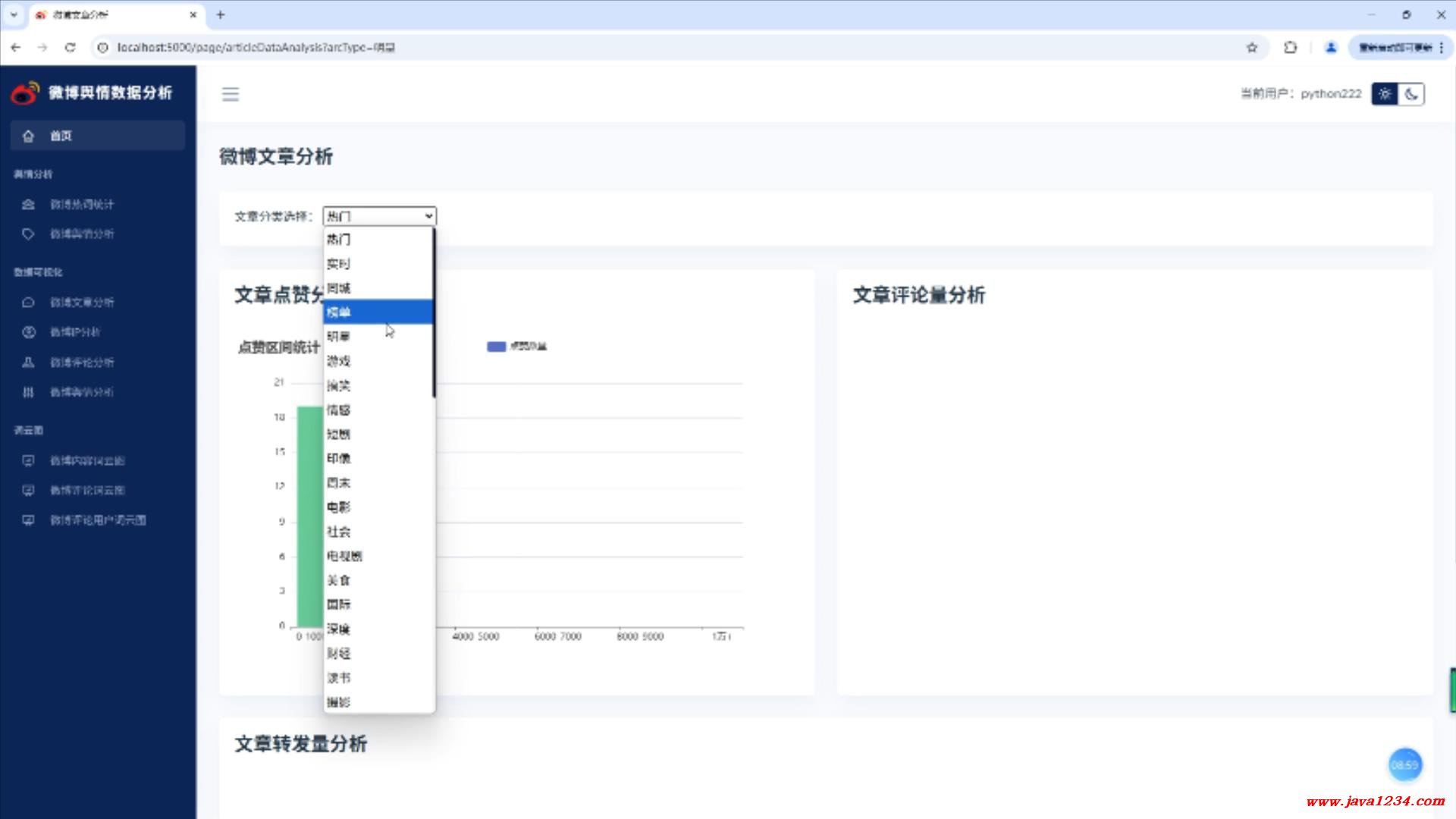 28_NLP輿情分析視頻教程_微博文章數(shù)據(jù)可視化分析-點贊區(qū)間實現(xiàn) B站在線學習地址: https://www.bilibili.com/video/BV15MMfzhEXR/ 高清視頻+源碼+文檔領(lǐng)取: http://python222.com/post/7 相關(guān)截圖: ![]() ![]() |