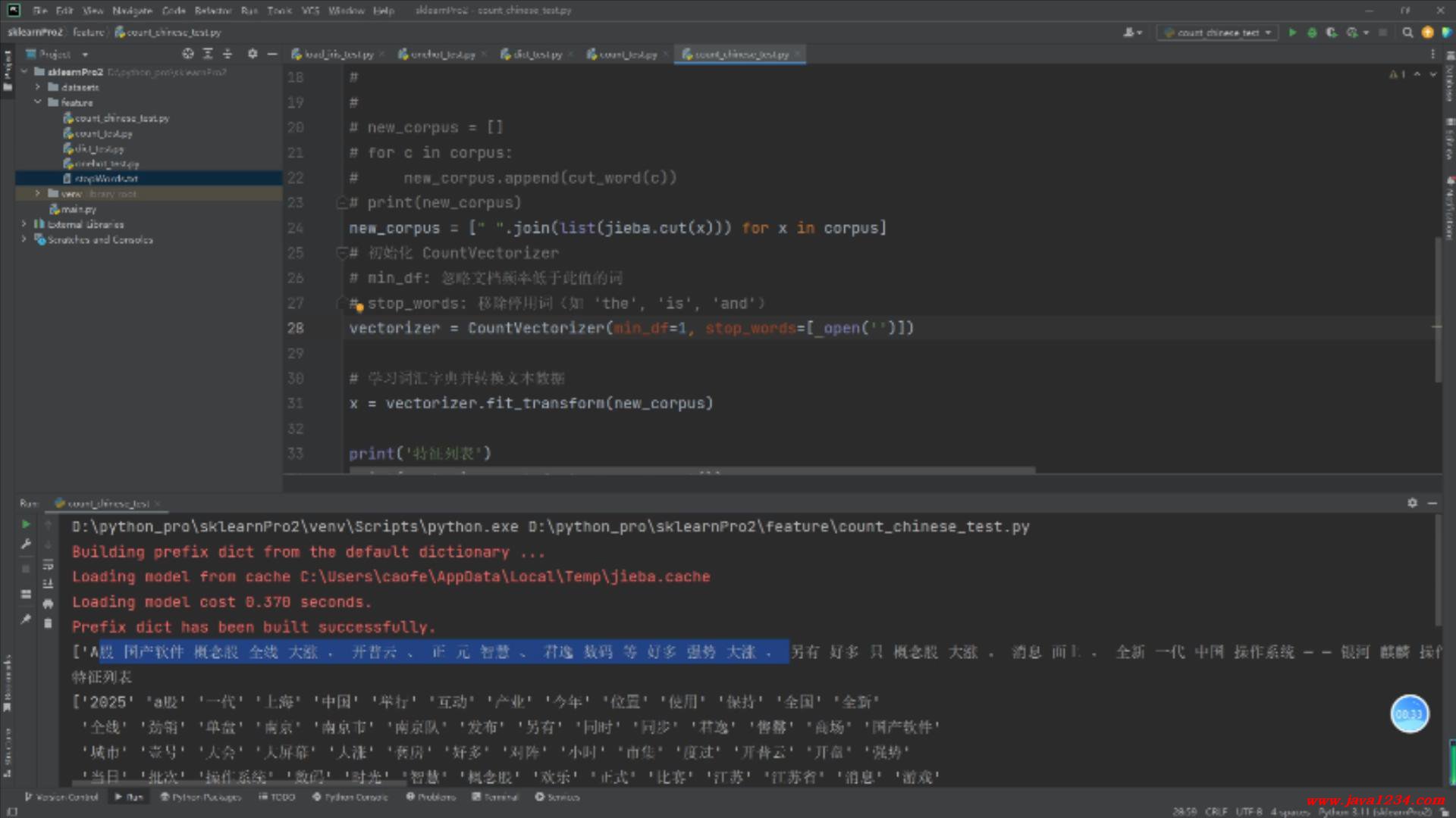 11_Scikit-learn視頻教程_詞袋模型(中文文本處理) - CountVectorizer B站在線學(xué)習(xí)地址: https://www.bilibili.com/video/BV11reUzEEPH/ 高清視頻+源碼+文檔領(lǐng)取: http://python222.com/post/7 相關(guān)截圖: ![]() ![]() |