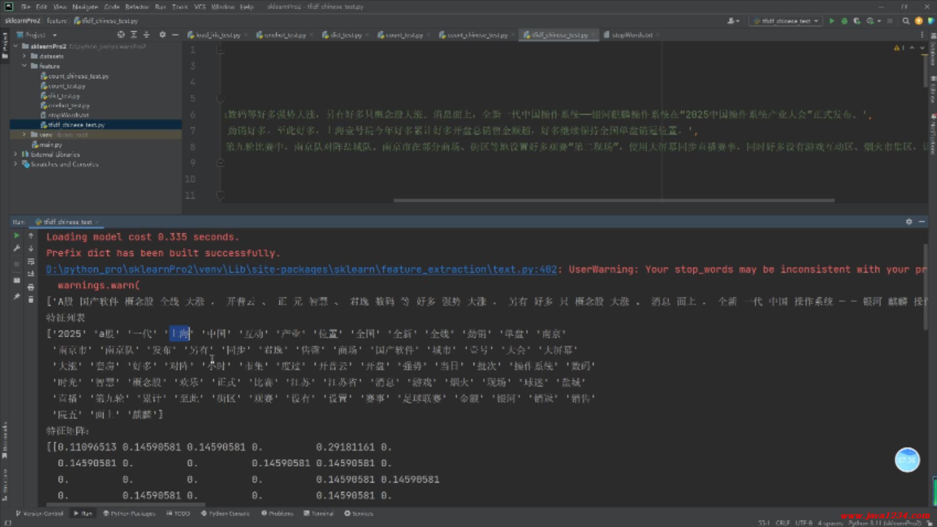 12_Scikit-learn視頻教程_TF-IDF模型 - TfidfVectorizer B站在線學(xué)習(xí)地址: https://www.bilibili.com/video/BV11reUzEEPH/ 高清視頻+源碼+文檔領(lǐng)?。?nbsp; http://python222.com/post/7 相關(guān)截圖: ![]() ![]() |