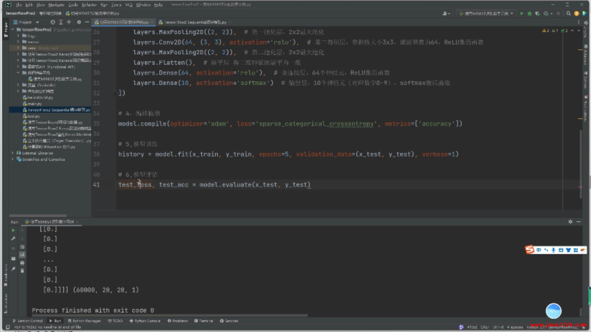19_TensorFlow2視頻教程_卷積神經(jīng)網(wǎng)絡(luò)示例-使用MNIST識別數(shù)字示例 B站在線學(xué)習(xí)地址: https://www.bilibili.com/video/BV1X5xVz6E4w 高清視頻+源碼+文檔領(lǐng)?。?nbsp; http://python222.com/post/7 相關(guān)截圖: ![]() ![]() |