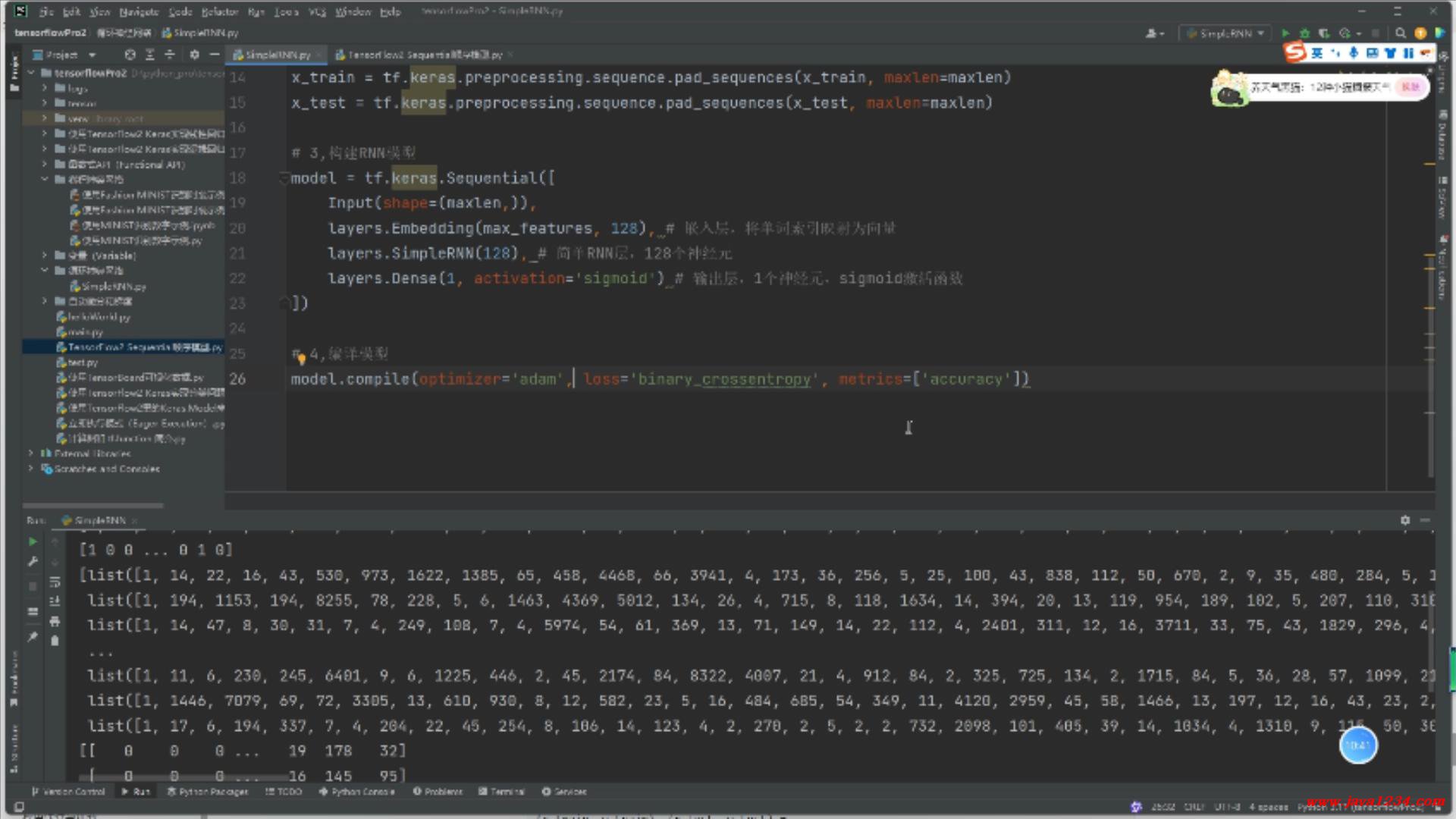 24_TensorFlow2視頻教程_循環(huán)神經(jīng)網(wǎng)絡(luò)(SimpleRNN)示例 B站在線學(xué)習(xí)地址: https://www.bilibili.com/video/BV1X5xVz6E4w 高清視頻+源碼+文檔領(lǐng)?。?nbsp; http://python222.com/post/7 相關(guān)截圖: ![]() ![]() |